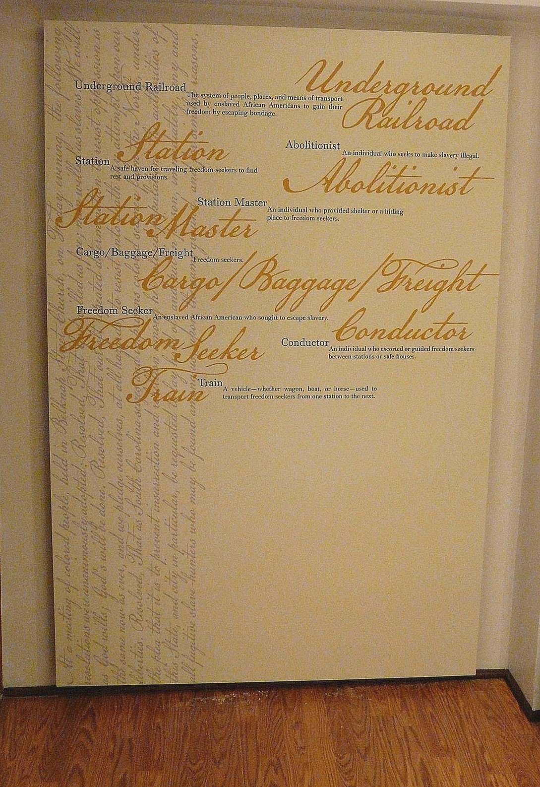 UGRR Glossary Large interpretive panel defining key terms in the Underground Railroad story used in the panel text.