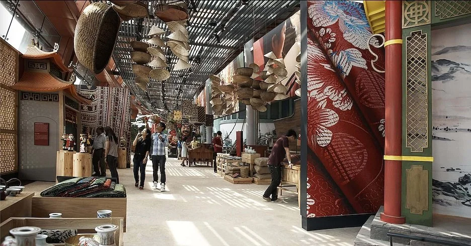 The Souk Immersive recreation of the port markets found along the Maritime Silk Route that interprets the 1,000- year history of the first global trade route. Detailed displays showcase a rich array of exotic goods including silk, porcelain, and spices with integrated interactives for a deeper dive into the history of the ancient trade route and the cultural and intellectual exchange that it facilitated.