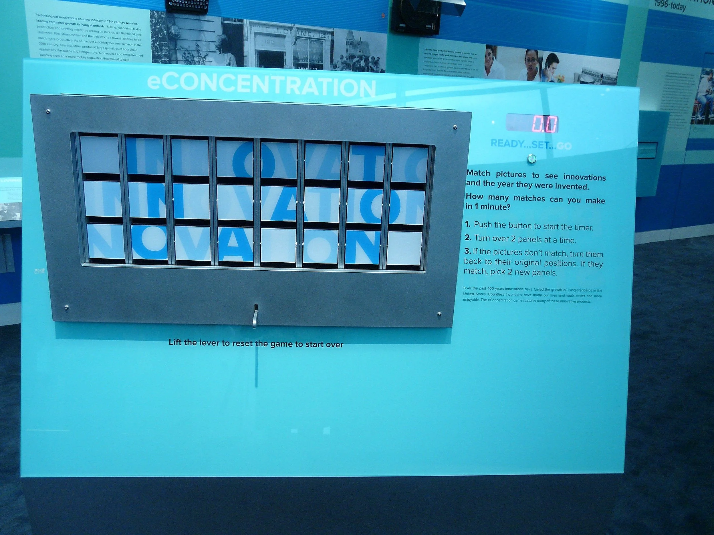 eConcentration Game Visitors can explore some of the innovations featured in the Growth of Living Standards Wall in this digital version of the matching game “Concentration” by matching an image of the invention to the year it was introduced.