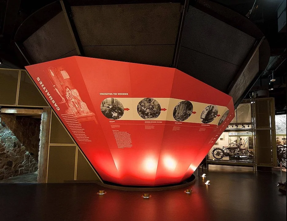 Casualties and Evacuation Exhibit Dramatic and detailed supergraphic presentation of the process of evacuating the large numbers of casualties from the battlefronts.