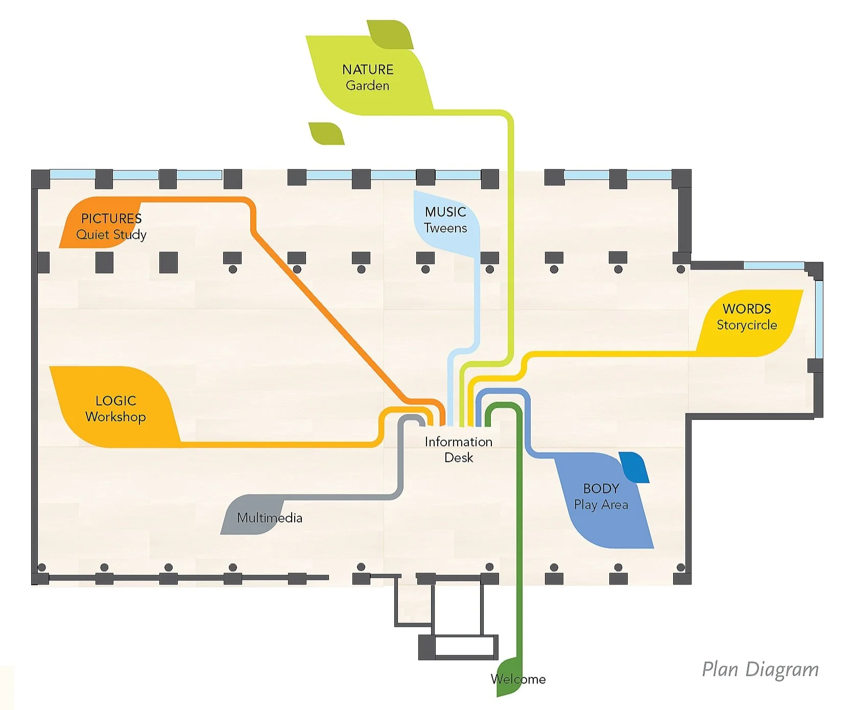 Thematic Plan Diagram A distinct “Learning Style” was designated for each area whose content and activities encourage children to use and develop that intelligence to explore related subject matter – Bodily/Kinesthetic (Toddler Area); Verbal/Linguistic (Storytelling Circle); Naturalistic (Garden); Musical/Rhythmic (Tweens area); Visual/Spatial (Quite Study); and Logical/Mathematical (Workshop).